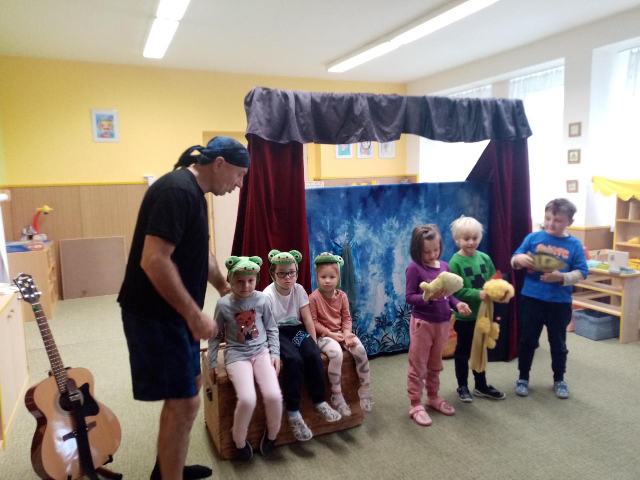 V pondělí 20. 10. nás navštívilo divadlo Z bedny s představením Podzimní pohádka. Jak se zvířátka u rybníka připravují na zima, nám pověděly žabky. Zároveň nás naučily třídit odpadky.