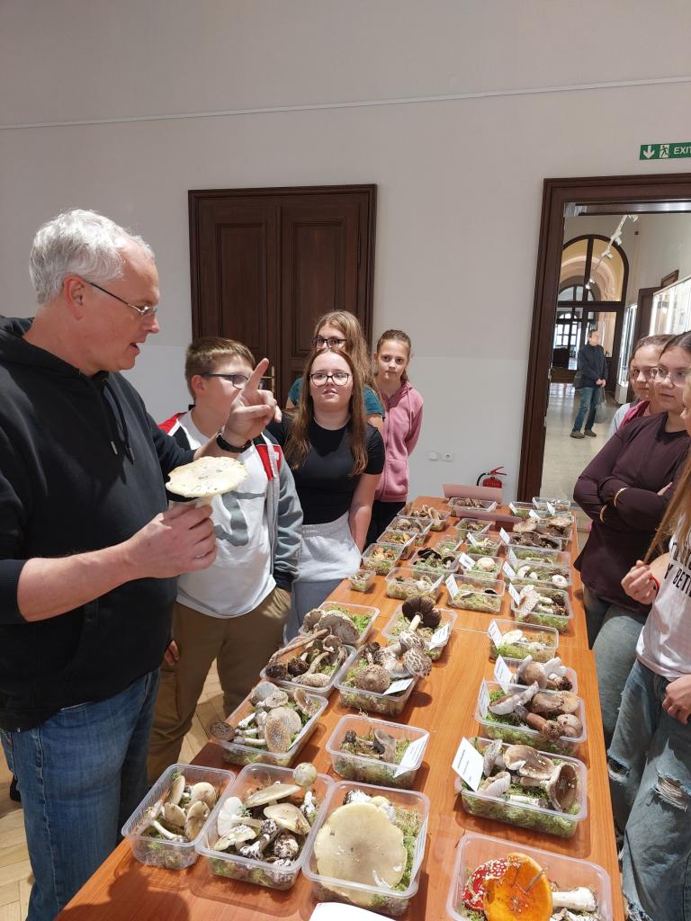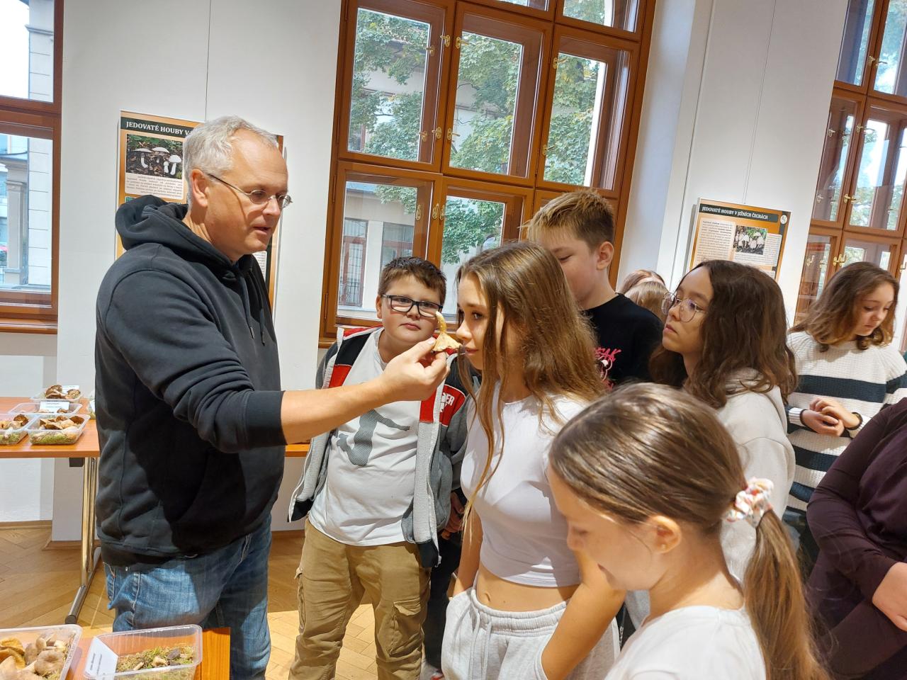Během přírodovědného semináře v sedmém ročníku jsme v říjnu navštívili výstavu hub v Jihočeském muzeu. Na výstavě byly k vidění čerstvé plodnice právě rostoucích hub doplněné o popisky, dále tematické panely s texty a fotografiemi.