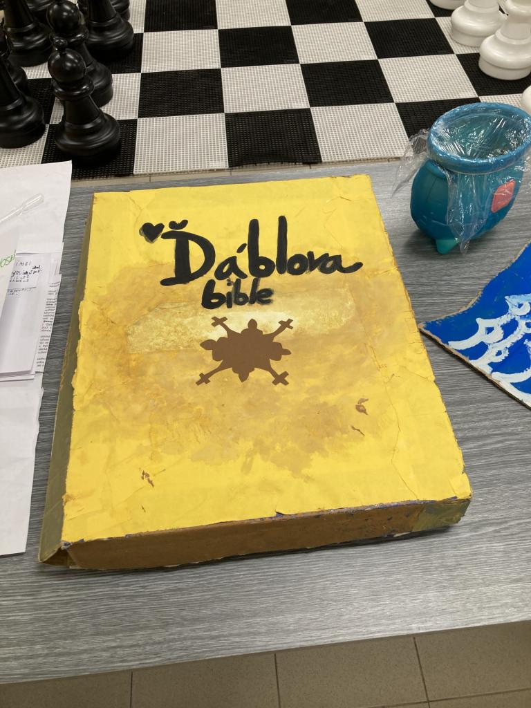 Žáci vytvořili řadu zajímavých výrobků a projektů. Na výstavě si můžete prohlédnout například modely golema, části „alchymistické“ laboratoře či Ďáblovu bibli.