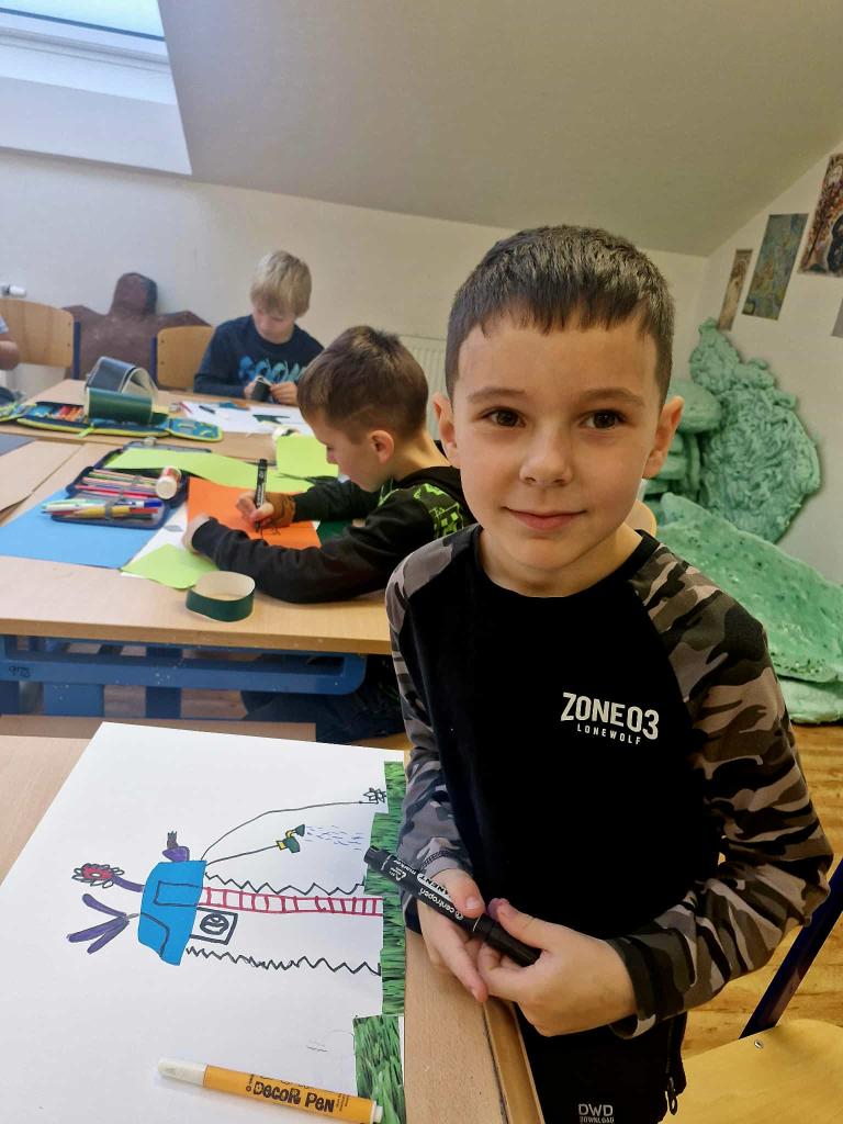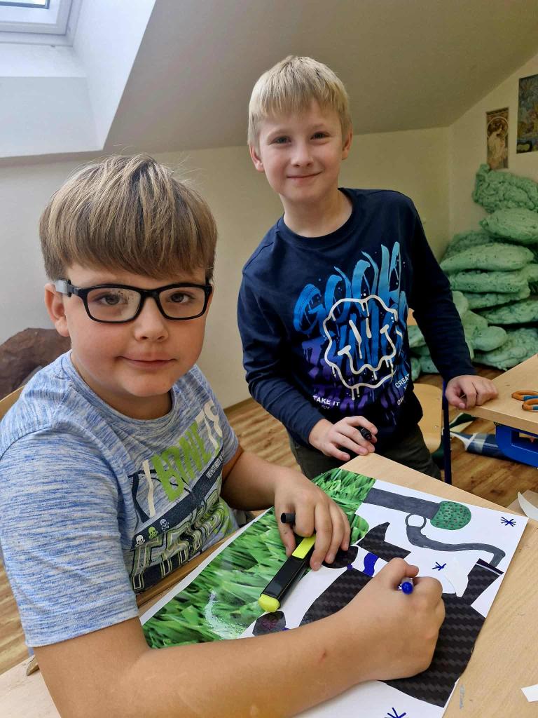 To vše si mohli vyzkoušet žáci druhé třídy, pro které připravil tandemovou dvouhodinovku náš výtvarník, Mgr. David Kadlec.