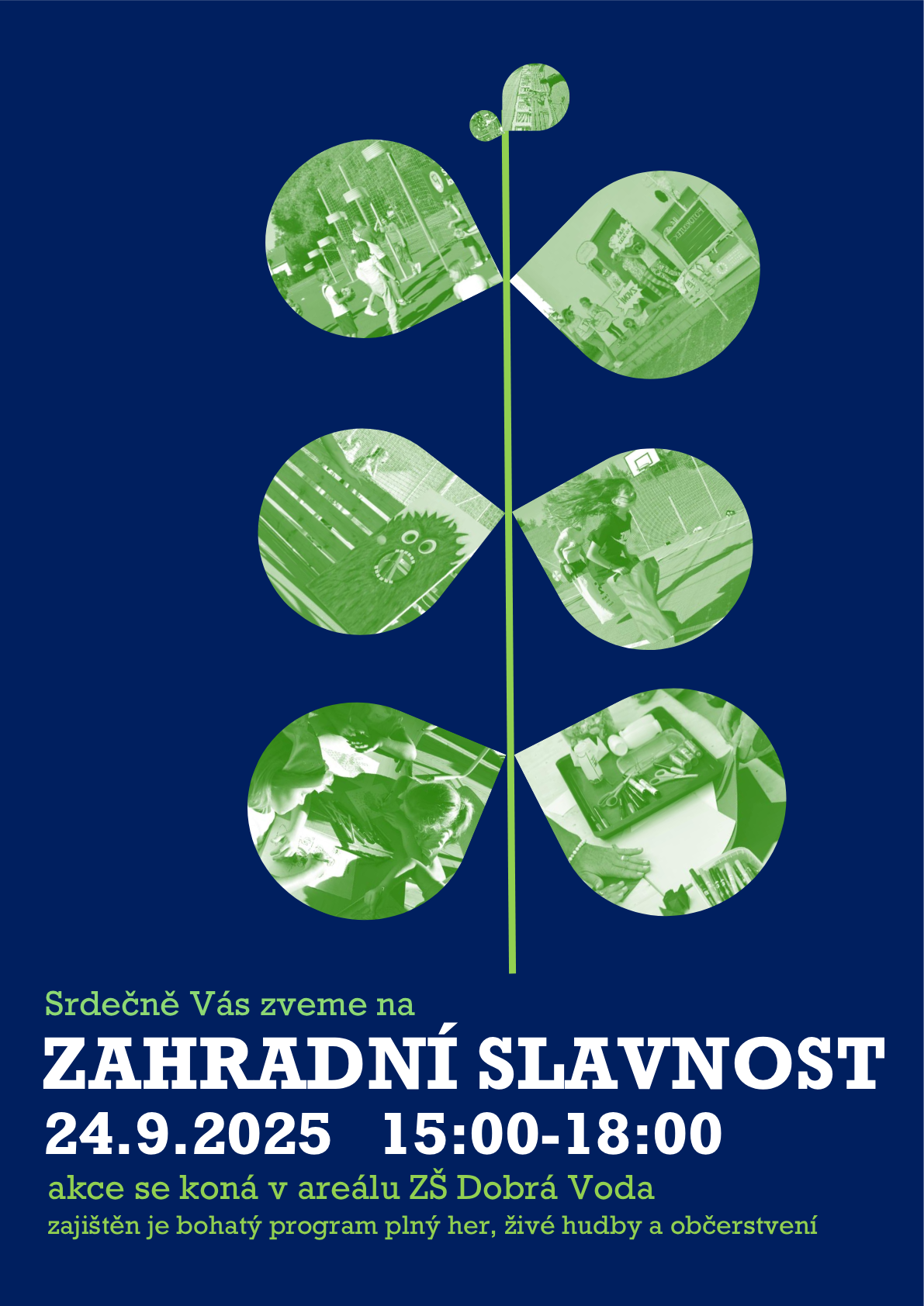 Zveme všechny děti, rodiče i přátele školy na naši zahradní slavnost, která se koná ve středu 24.9.2025 od 15:00. Budeme se těšit!