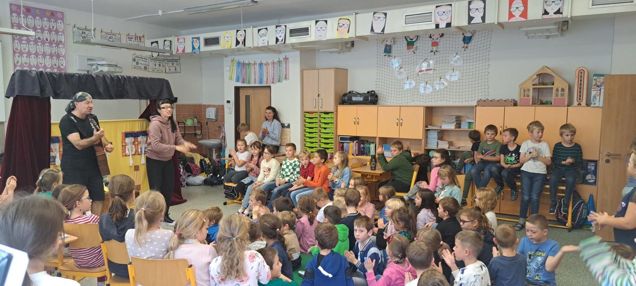 Tentokrát jsme nepozvali nikoho jiného než srandovního pana Pohodu, který nám předvedl veselé představení Otesánek. Program doplnil hrou na kytaru a písničkami, takže jsme se skvěle bavili.